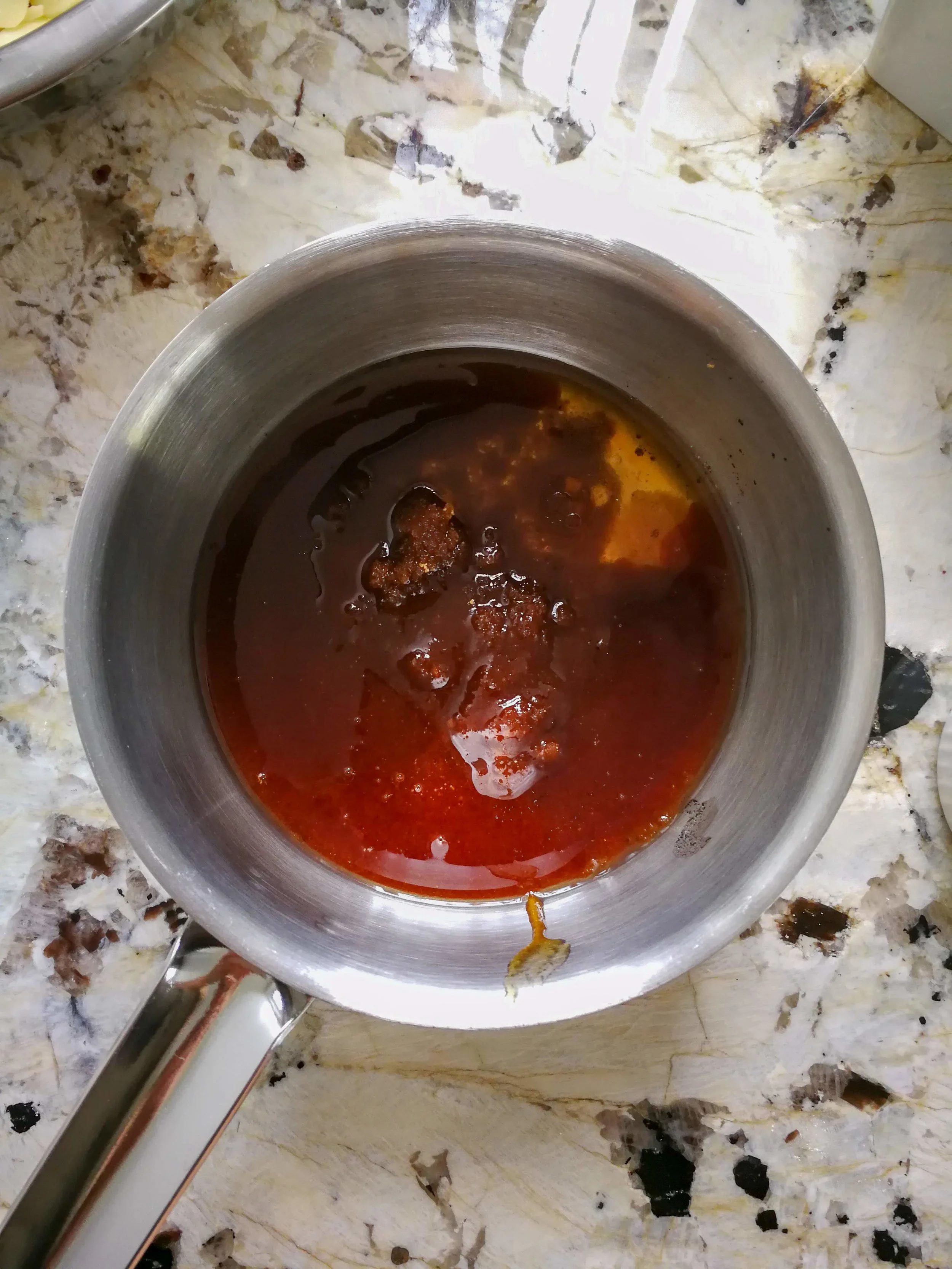 In a small sauce pan heat honey, Argan oil, brown sugar and salt. Cook for about 5 minutes until sugar has melted. Add vanilla.